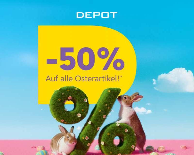 *Gültig solange der Vorrat reicht. Nur in teilnehmenden deutschen DEPOT Filialen. Ausgenommen REWE, EDEKA, Toom und mit Ausnahme von Gutscheinen, Büchern, Kooperationsartikeln sowie bereits reduzierten Artikeln. Nicht mit anderen Aktionen/Coupons/Rabatten kombinierbar. Weitere Aktionsbedingungen findet ihr auf der Website von DEPOT.