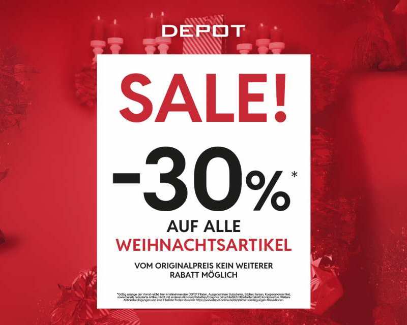 Bei DEPOT in den Bahnhofspassagen Potsdam könnt ihr euch in der Vorweihnachtszeit 30 % Rabatt* auf Weihnachtsdekorationen sichern!