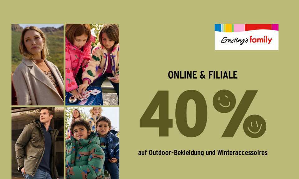 Bei Ernsting’s family gibt es vom 12. bis 14. Dezember 40 % Rabatt auf Outdoor-Bekleidung und Winteraccessoires.