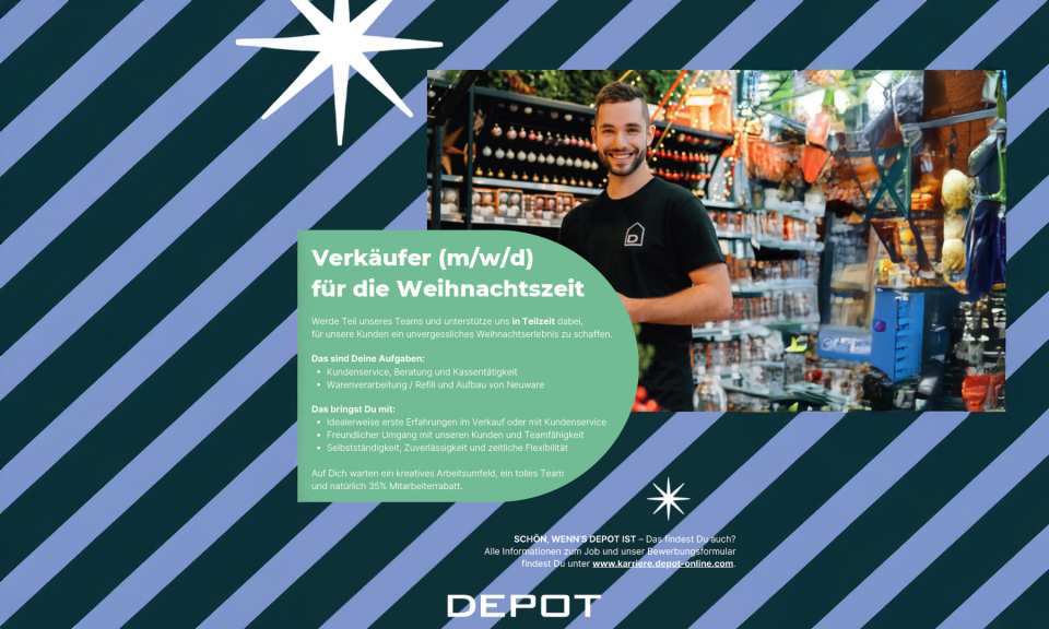 DEPOT sucht Verkäufer (m/w/d) für die Weihnachtszeit